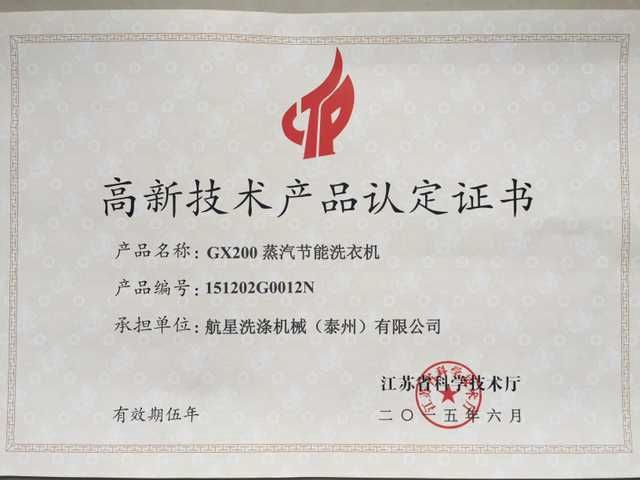 節(jié)能洗衣機高新證書